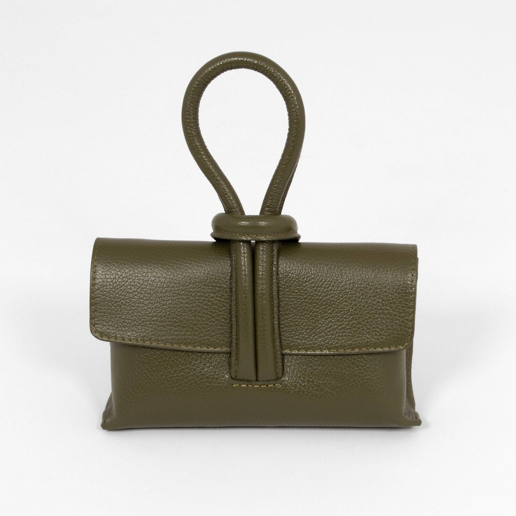 Trixie Italian Leather Wristlet Clutch Bag Olive