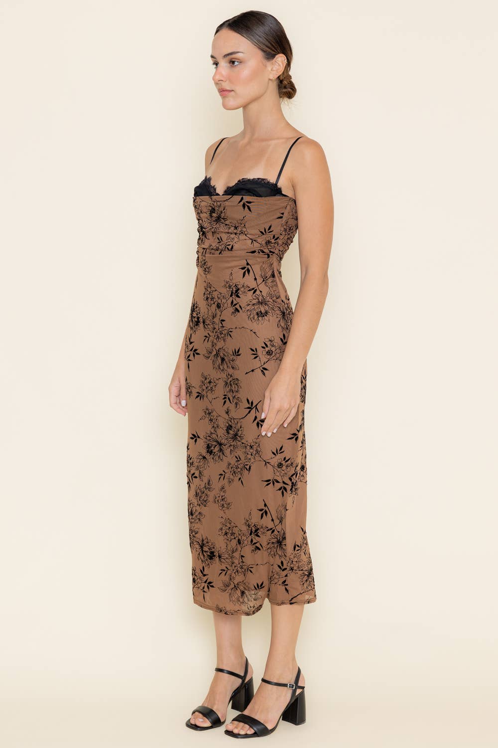 LACE BURN OUT VELVET FLORAL MESH MIDI DRESS