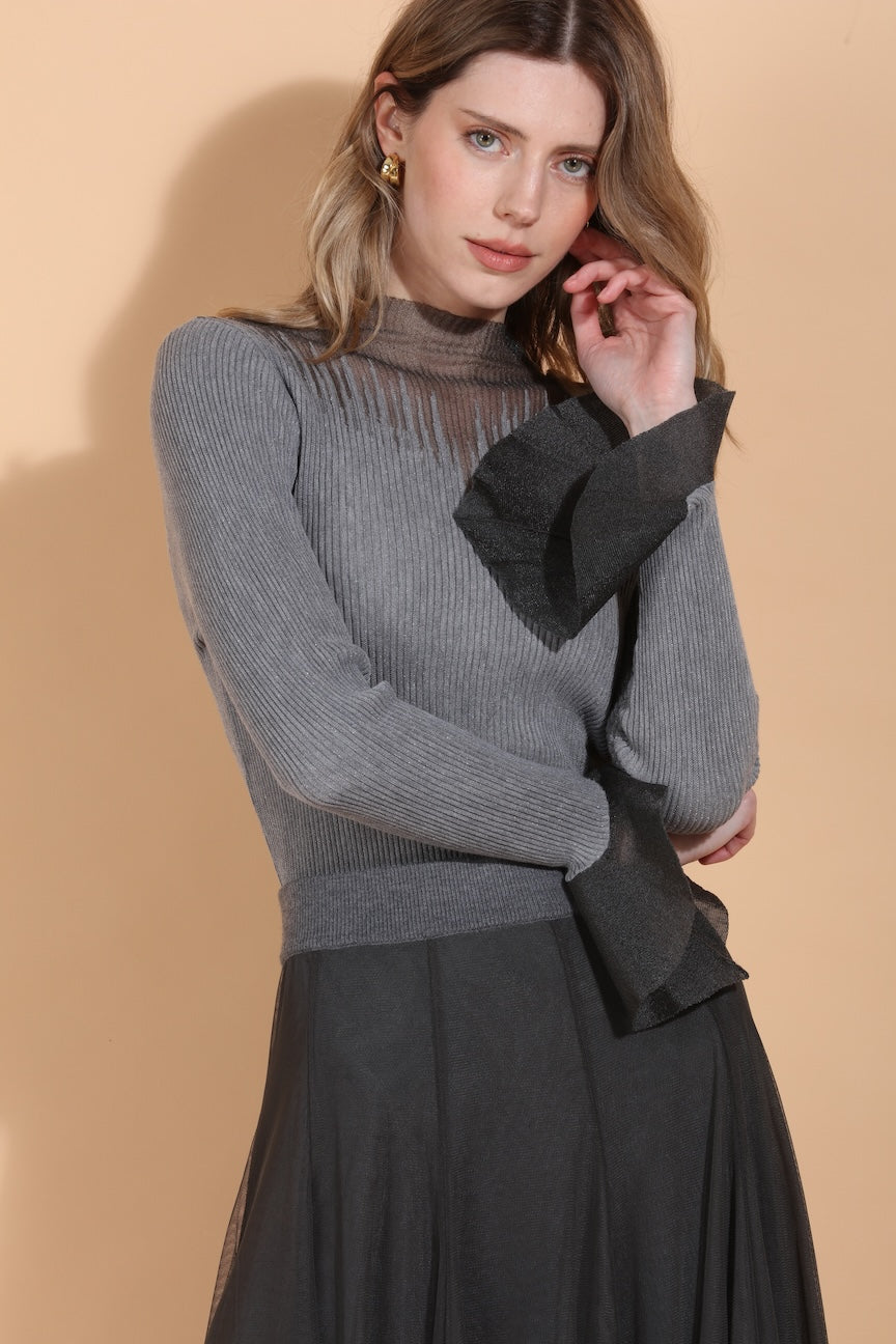 Mock Neck Top w/ Peplum Cuff *Multiple Colors*