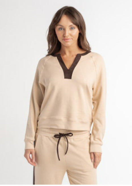 V Neck Terry Top with Suede