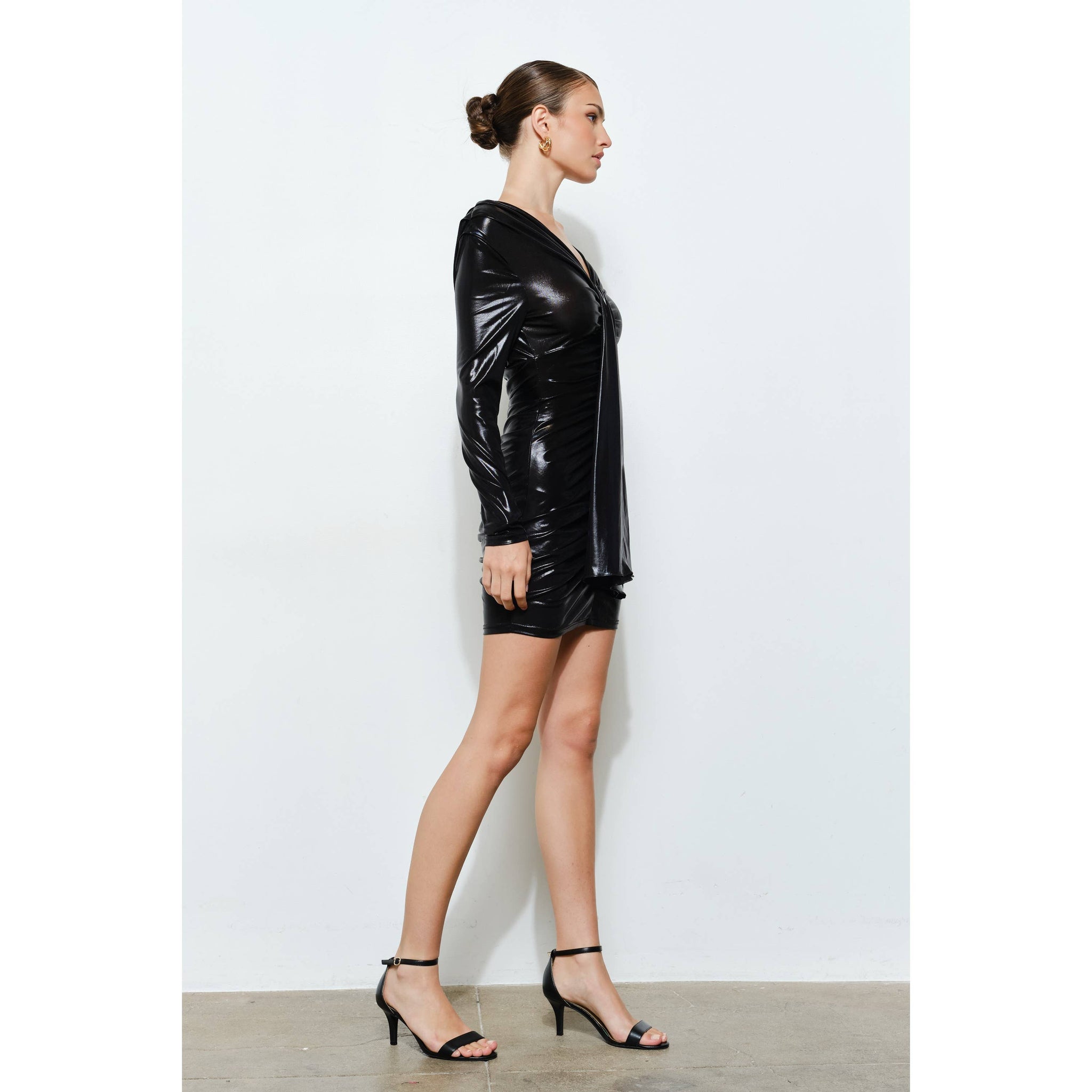 -Stretchy metallic bodycon mini dress for a sleek, curve-hugging fit