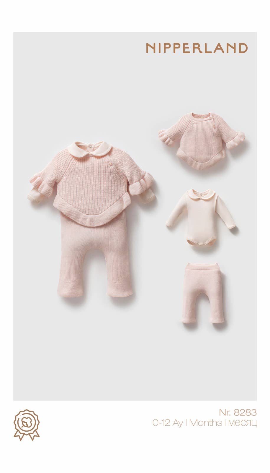 Easy dressing with snap closure and stretch knit pants — practical for busy parents.