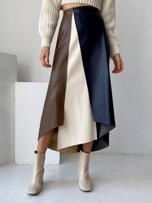 Material:PU,PU Style:A-line,High Waisted,A-line,High Waisted Feature:Contrast Color,Asymmetric,Split-front,Contrast Color,Asymmetric,Split-front Occasion:Vintage,Leisure Fashion,Vintage,Leisure Fashion Seasons:Spring,Autumn,Winter,Spring,Autumn,Winter Type:Skirts Bottoms,Skirts Bottoms,Long Skirts Size One_size (inch) : Waist= 22.62 ; Bottom Length= 31.20 ;