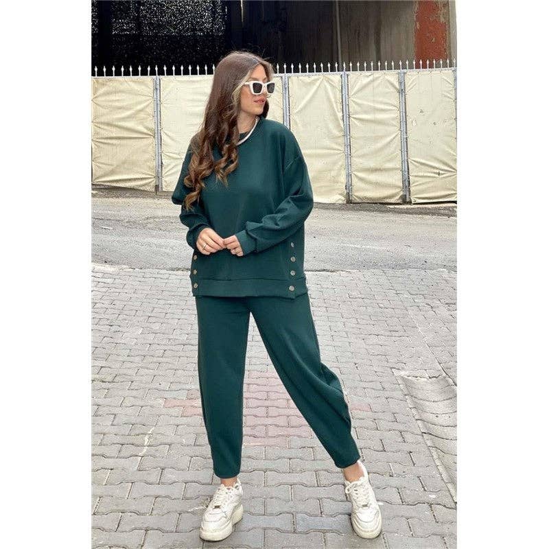 Material:Dacron,Spandex Style:Loose,Sport,Pullover Feature:Comfortable,Washable,Solid Color Neckline:Round-neck Occasion:Going out,Casual,Simple,Sports Seasons:Spring,Autumn Type:Two Pieces Set Sleeve Length:Long Sleeve Size S (inch) : Bust= 46.02 ; Waist = 24.57-27.30 ; Shoulder= 20.67 ; Sleeve= 19.89 ; Hips= 40.56 ; Top Length= 26.52 ; Bottom Length= 37.44 ; Size M (inch) : Bust= 47.58 ; Waist = 25.74-28.08 ; Shoulder= 21.06 ; Sleeve= 20.28 ; Hips= 42.12 ; Top Length= 26.91 ; Bottom Length= 37.83 ; Size L (inch) : Bust= 49.14 ; Waist = 27.30-29.64 ; Shoulder= 21.45 ; Sleeve= 20.67 ; Hips= 43.68 ; Top Length= 27.30 ; Bottom Length= 38.22 ; Size XL (inch) : Bust= 50.70 ; Waist = 30.42-32.76 ; Shoulder= 21.84 ; Sleeve= 21.06 ; Hips= 45.24 ; Top Length= 27.69 ; Bottom Length= 38.61 ; Size 2XL (inch) : Bust= 51.48 ; Waist = 31.98-34.32 ; Shoulder= 22.23 ; Sleeve= 21.45 ; Hips= 46.02 ; Top Length= 28.08 ; Bottom Length= 39.00 ; 1. High-quality fabric: The sweatshirt and sport pants are made of s